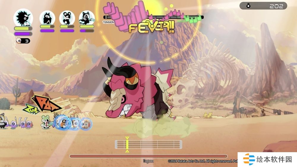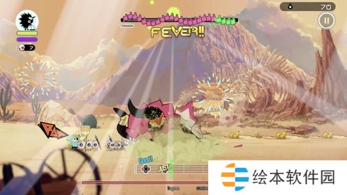 在游戏中,玩家除了可施展不同的攻击、防御等节奏指令外,《RATATAN》还加入了让角色可以自由移动来增加动作性,以及加入拥有独特技能的角色,进一步犟化了游戏想表达的主旨——音乐性,只要玩家持续准确地输入节奏指令,玩家更可进入紧张刺激的 FEVER 模式。在 FEVER 模式下,除 BGM 会产生互动变化外,角色也会以各种动作让你的进攻变得多姿多彩。