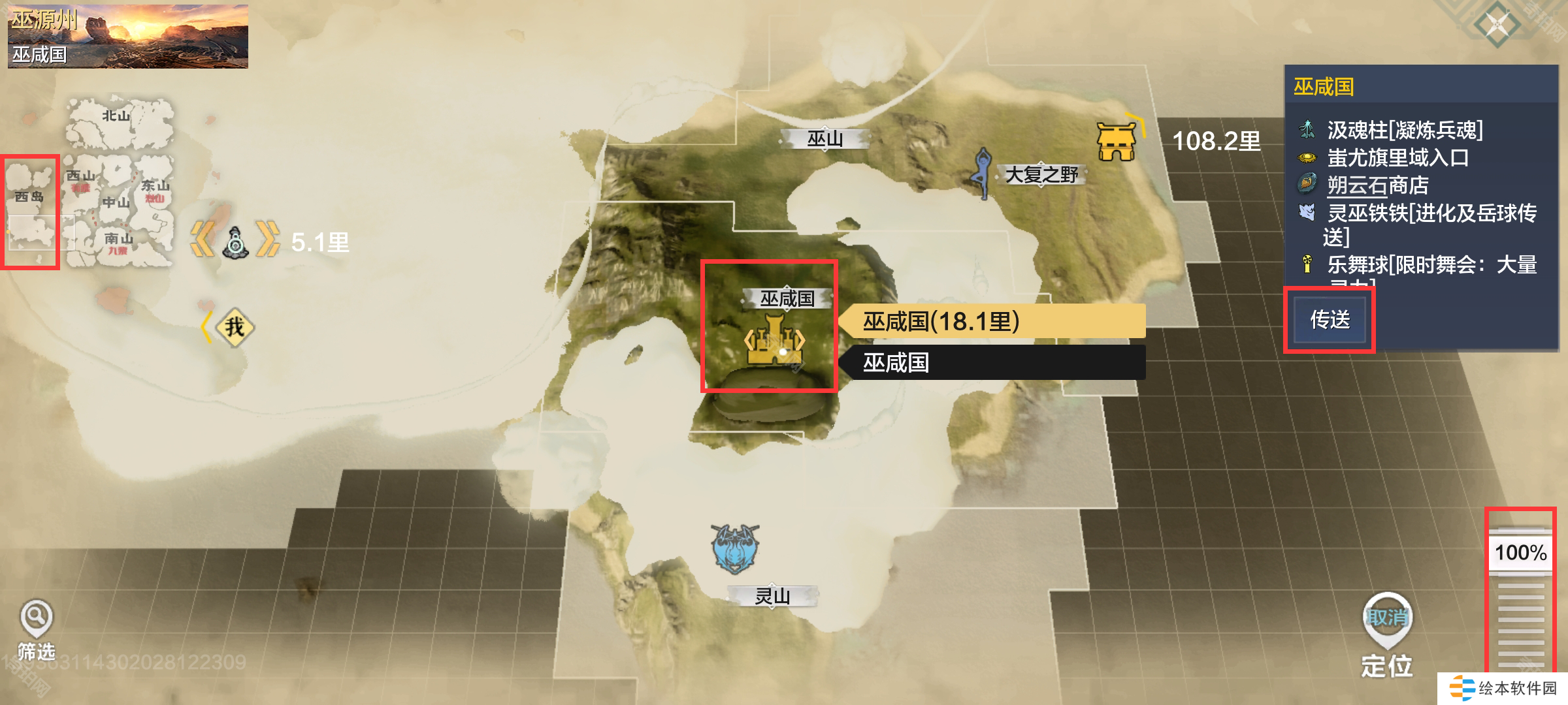 ①打开大地图,定位到西岛主城后即可传送到西岛主城巫师雕像背后