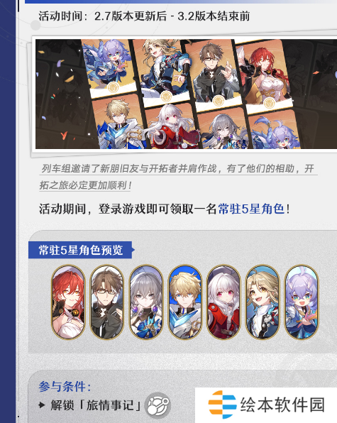 大家只需要在活动时间登录游戏就可以领取一名五星常驻角色。