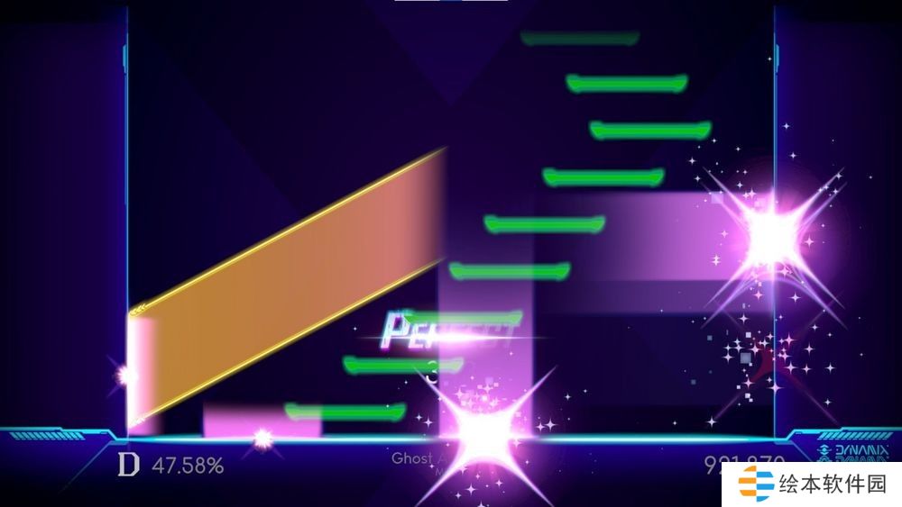 《Dynamix Universe》延续了原作的创新玩法,采用独特的三面落下式设计。玩家在游戏中需在左、中、右三个区域点击音符,每个区域各自代表不同乐器的音轨,提供更为沉浸和具挑战性的节奏游戏体验。这款新作改良了《Dynamix》的系统,并加入同时标记和新音符。