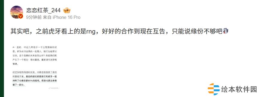恋恋红茶:虎牙投资iG之前看上的是RNG 从合作到现在互相对簿公堂