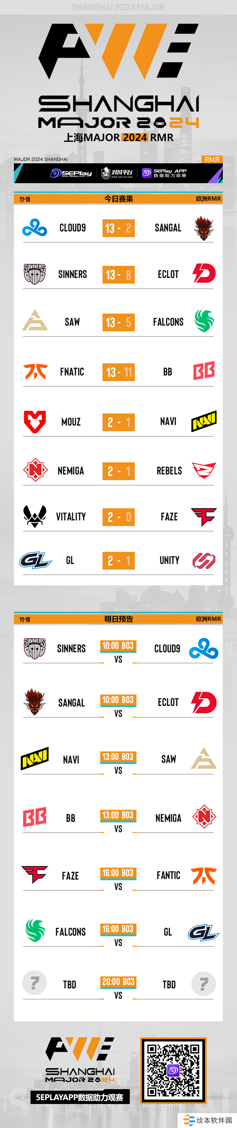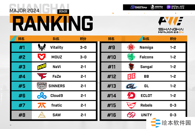 FaZe则还需要一场胜利。SINNERS、C9和fnatic则是位列第5-7位。以下为今日赛果、明日预告和积分图一览。