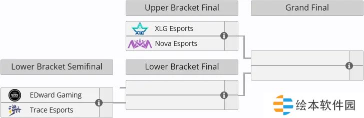 淘汰赛阶段为双败赛制,XLG与NOVA将在胜者组决赛率先决出一个总决赛的席位,EDG与TE将从败者组半决赛打起。