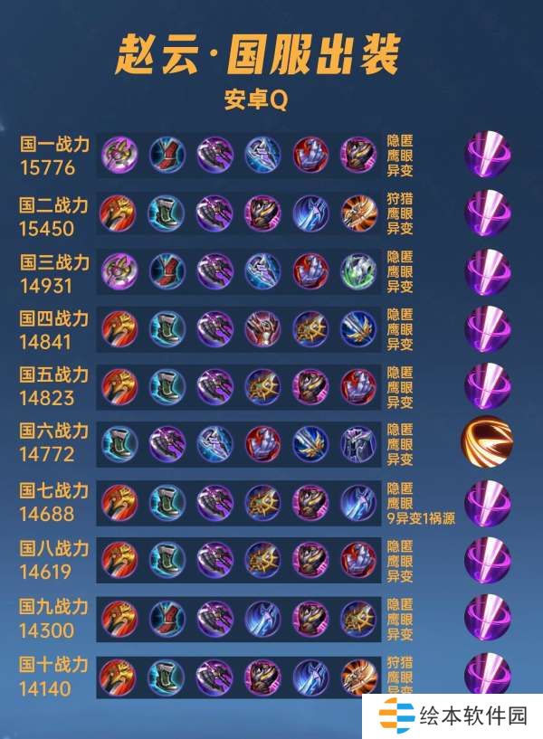 这篇文章我们来看一下40位国服赵云的出装铭文,没有想到一个这么冷门的英雄,出装这么杂乱,基本上每个人一个路子。