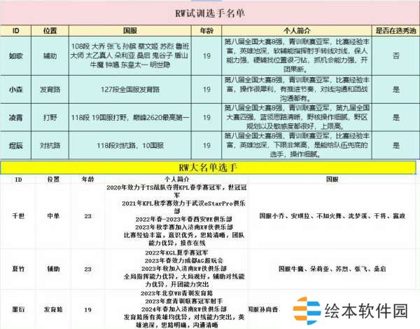 目前可试训名单汇总:不然、冰尘、壶神多选手在列