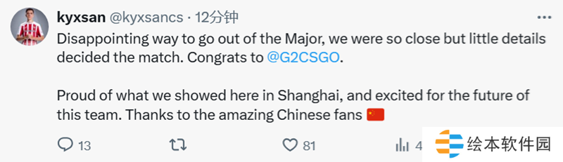 kyxsan:以失望的方式告别Major。我们如此接近,但最终细节决定成败。祝贺G2。