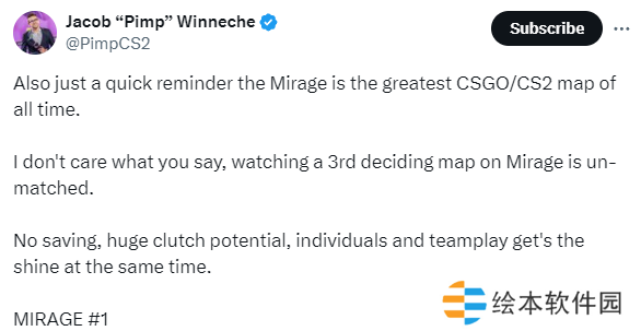 “另外,我还要提醒大家,Mirage就是CSGO和CS新版本有史以来最伟大的地图。