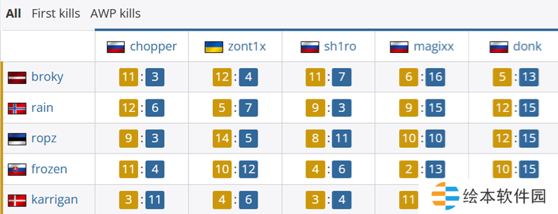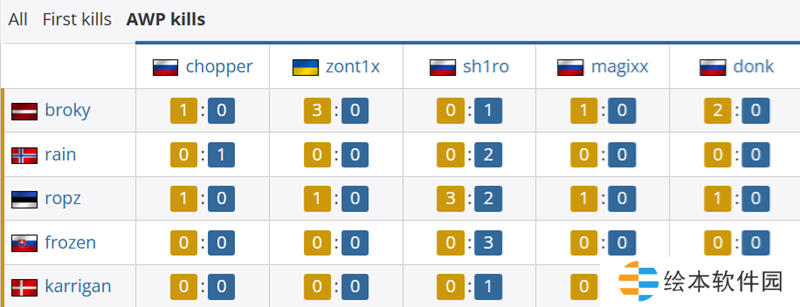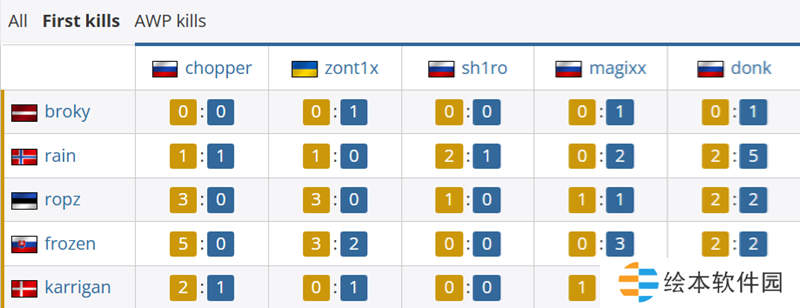 Robin Kool | ropz平分秋色之外,对于其他FaZe选手也占据优势。