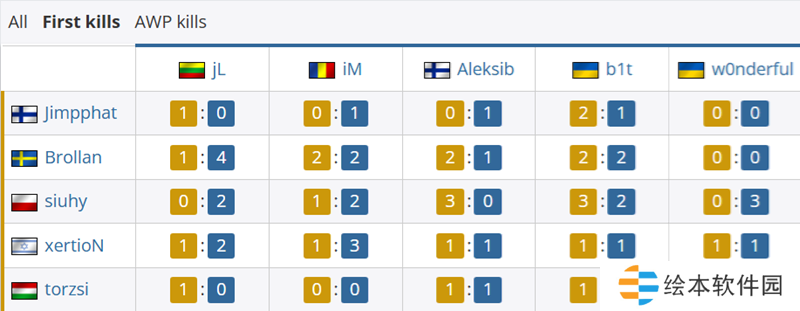 首杀数据上,Brollan和siuhy各自为MOUZ拿到了7个首杀,而NAVI方面iM和jL各自为队伍拿到了8个首杀。