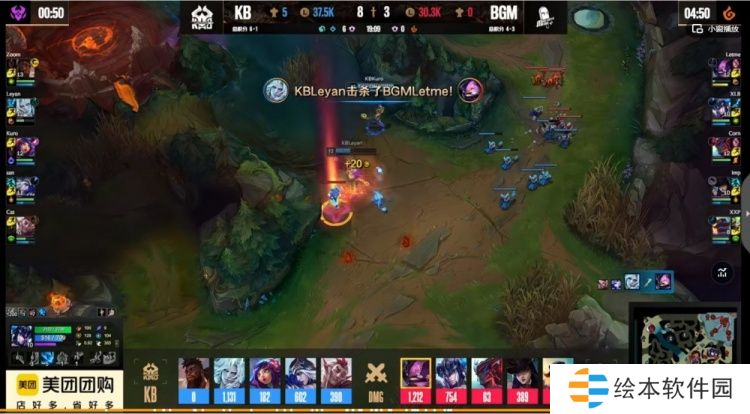 【19:08】KB开小龙,XLB猪妹一个大招命中Leyan佛耶戈拼惩抢下小龙,但是KB追击再次收掉了Letme凯南!8K经济差!