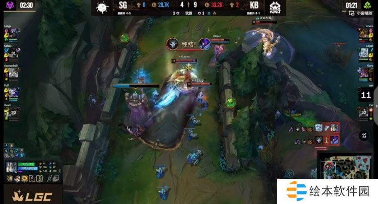 本场比赛前期KB拿下经济优势,但是中期直接开送被SG一度将经济差拉回到2K!不过的关键大龙团前Kakao卡兹克被抓,Leyan佛耶戈在龙坑里配合队友收割完成超神,随后的远古龙团xiaocaobao加里奥落单失误被秒,KB拿下第二条大龙+远古龙,三龙汇一波结束比赛,拿下第九胜!