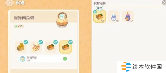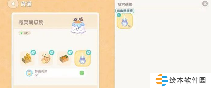 6、奇灵南瓜碗:小麦+鸡蛋+南瓜棒棒糖+幽幽棒棒糖。