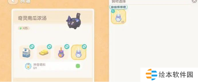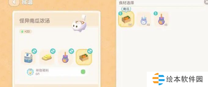 2、奇灵南瓜浓汤:牛奶+黄油+南瓜棒棒糖+幽幽棒棒糖。