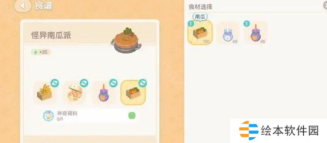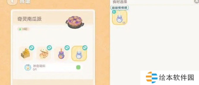 4、奇灵南瓜派:小麦+鸡蛋+南瓜棒棒糖+幽幽棒棒糖。