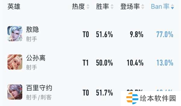 版本最强射手依旧是三位老面孔,敖隐近期巅峰赛51.6%胜率+86.8%BP率,在中高分段就是非BAN必抢的存在。