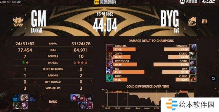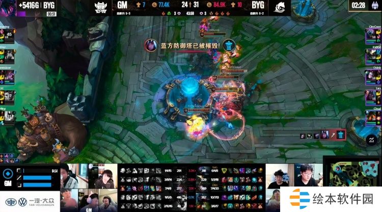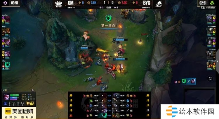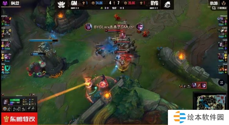【24:20】中路团战少人的GM打野xinyi皇子先开盖了三个,但是Lwx维鲁斯在Cloud泰坦坩埚解围之后配合队友反杀掉了GM野辅!下路GimGoon贾克斯单推掉了下路高地塔!这波最终是BYG的1换2!