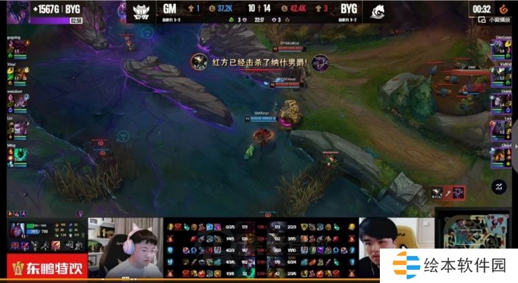 【8:30】GM再次下路四越二,这次Kid斯卡纳还是支援到位,不过GM还抗塔还是强杀掉了BYG下路组,西门的阿萝拉被换掉!