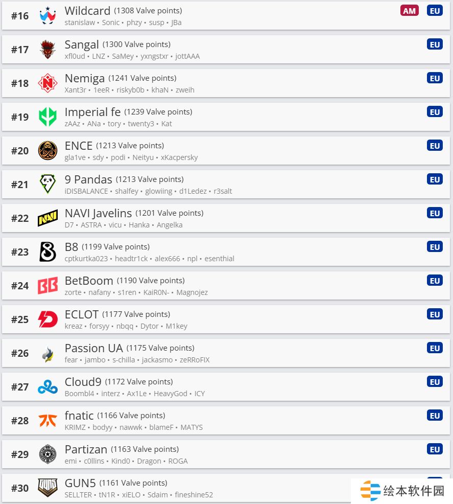 欧洲区前30名如下: