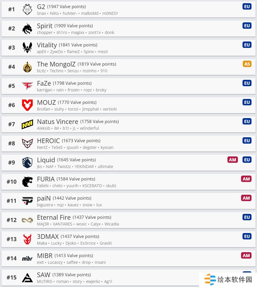 今天V社更新了旗下CS世界排名,这一世界排名会和明年的赛事邀请紧密联系,因此是主办方和战队都必须关注的内容。