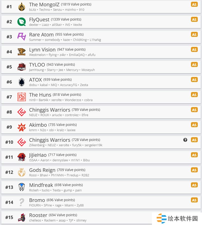 V社世界排名1219:G2仍居第一;MongolZ前三一步之遥