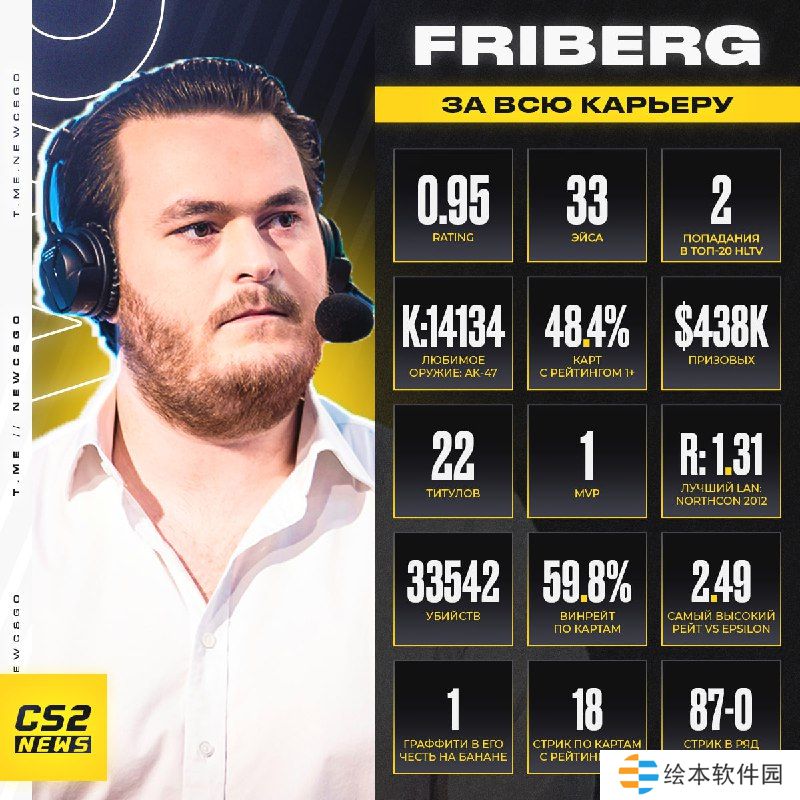 下面就让我们一起来回顾friberg在选手生涯的成绩和数据表现吧。以下数据统计自HLTV,筛选条件为friberg职业生涯的所有比赛: