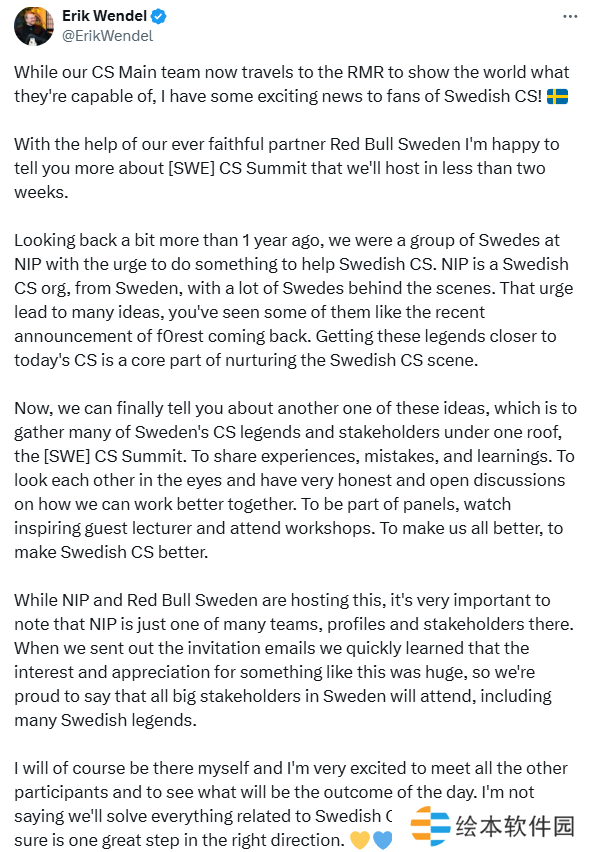 “当我们的CS主队现在前往上海Major 欧洲RMR向世界展示他们的能力时,我也有一些令人兴奋的消息要告诉瑞典CS的粉丝们!