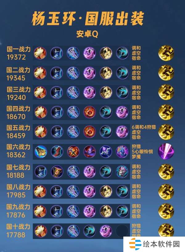 这一套装备中路杨玉环已经用了很长时间了,最近半年左右出现了中路也出肉的路线,这固然没有问题。但是走中路还是推荐输出路线,出肉路人局带飞能力会弱很多。