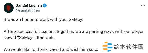 Sangal宣布了SaMey的离队,结束了这位波兰狙击手与队伍长达七个月的合作。