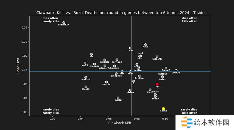 作为2023年的HLTV TOP5选手,对比去年,Spinx在数据上并无太多退步,基本维持了他在去年的同等水平。对于Vitality来说,要用新援来取代一位对本队战术体系已经相当熟悉的选手,这无疑是一场豪赌,而ropz,就是Vitality推到台前的赌注。