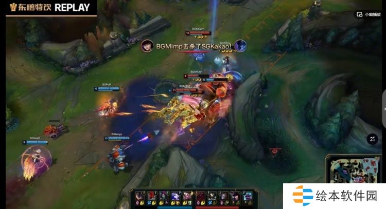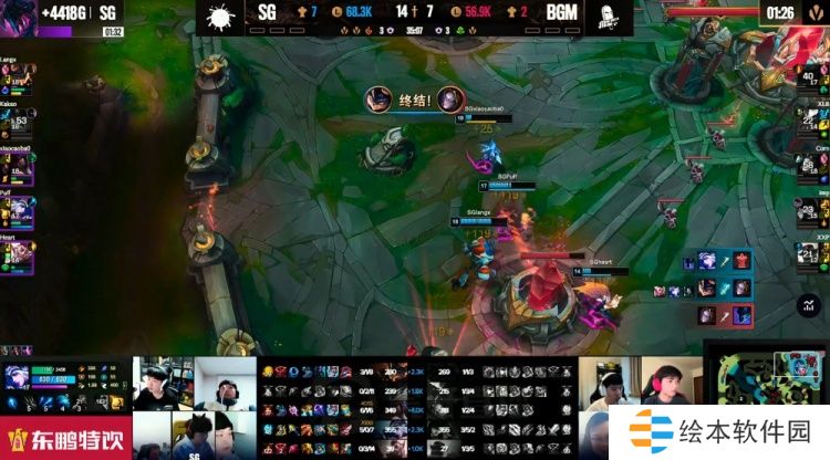 【22:35】中路BGM想开Puff艾希被他规避,回头艾希一箭命中Letme奥恩,这次虽然队友想救,但是Langx兰博给大配合进场的xiaocaobao阿卡丽成功切死后排的Imp女警!这波SG打出0换3之后回头拿下大龙!经济差4K!