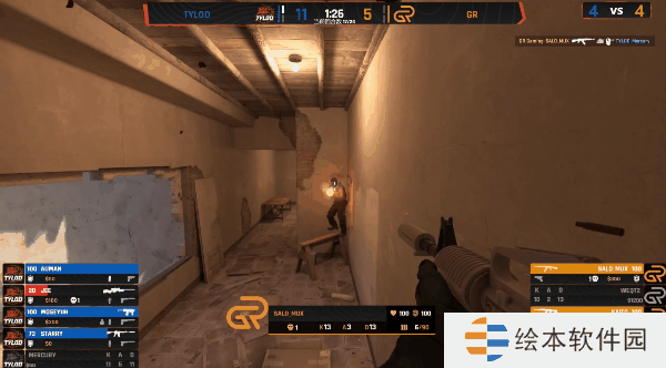 下半场GR来到进攻方,手枪局中路四人提A平推包点,回防的TYLOO凭借一颗烟雾直接强行拆包拿下胜利。次回合GR强起,双方先在中路打出二换二,随后GR想要转点A区,但是没有料到TYLOO已经前顶到匪家,最终GR再次输掉回合。TYLOO拿到11-4领先。