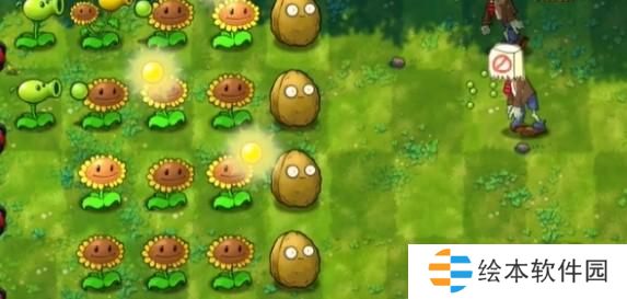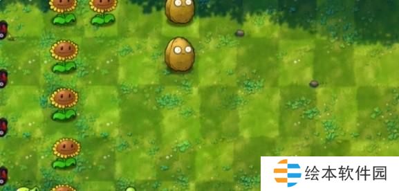 2、先在左侧种植一列向日葵,在右侧种植两个坚果。