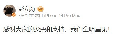 Xun更博感谢粉丝:感谢大家的投票和支持,我们全明星见!