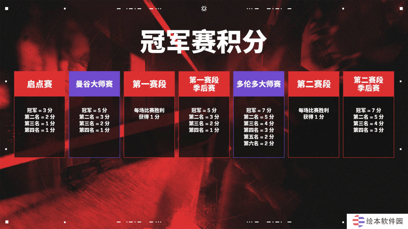 和去年一样,冠军赛积分将分配至每个赛段和比赛中。我们的目标是确保赛季的每个部分都具有挑战性,且不会沦为鸡肋。为此,我们做出了两项重要改动:让大师赛和季后赛的积分分配更具有深度,并使各个赛段独立,为所有队伍在赛季中期提供新的起点。