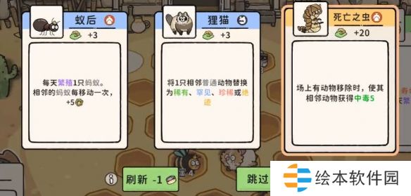 roll我们所需要的动物,拿到蜂后、杰瑞、屎壳郎后清理掉场上其他的动物。