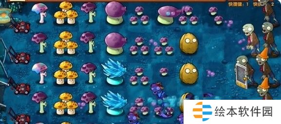 4、然后补齐一列大喷菇,合成两个寒冰大喷菇,在右侧补充多个坚果。