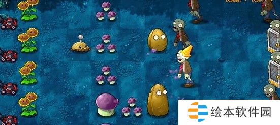 5、最后在里侧合成一列向日葵土豆雷,将豌豆射手和小喷菇合成双发豌豆小喷菇即可过关。
