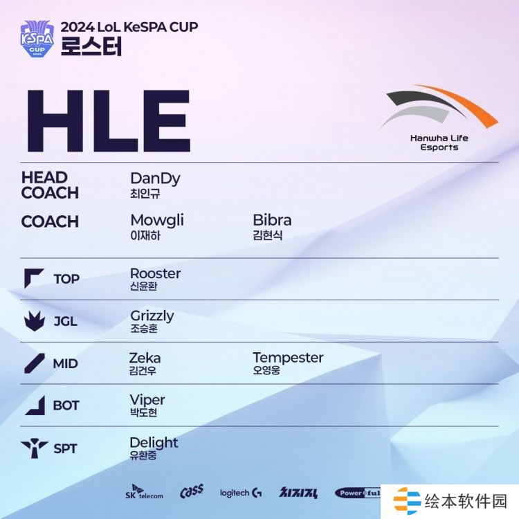直播吧11月29日讯 KeSPA杯官方公布了将于11月30日开打的KeSPA杯各队大名单,GEN除AD位置外其余主力均参赛,T1方面Oner和Gumayusi出现在大名单内。HLE方面Zeka、Viper、Delight三名主力参赛。