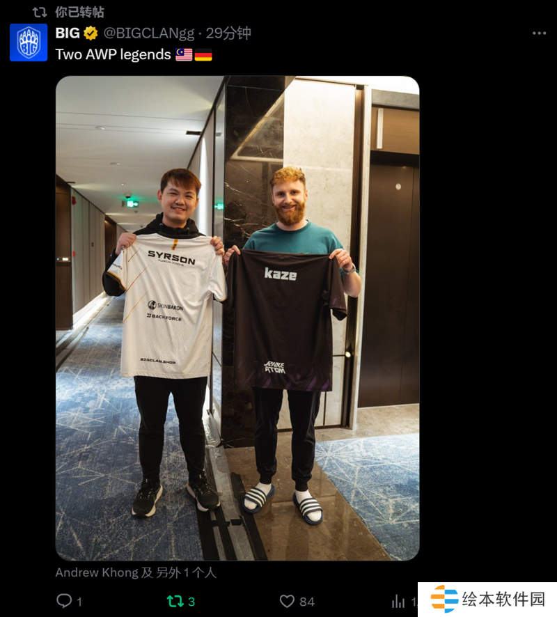日前BIG战队官方账号在社交平台上发布动态,表示两位传奇狙击手见面。照片中的内容是