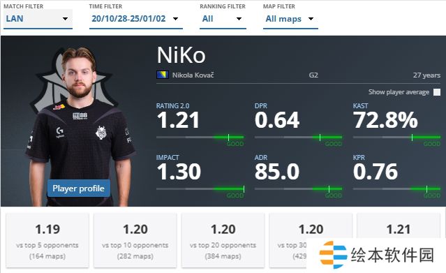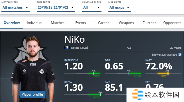 下面就让我们一起来回顾NiKo在效力G2期间的数据表现。以下数据统计自HLTV: