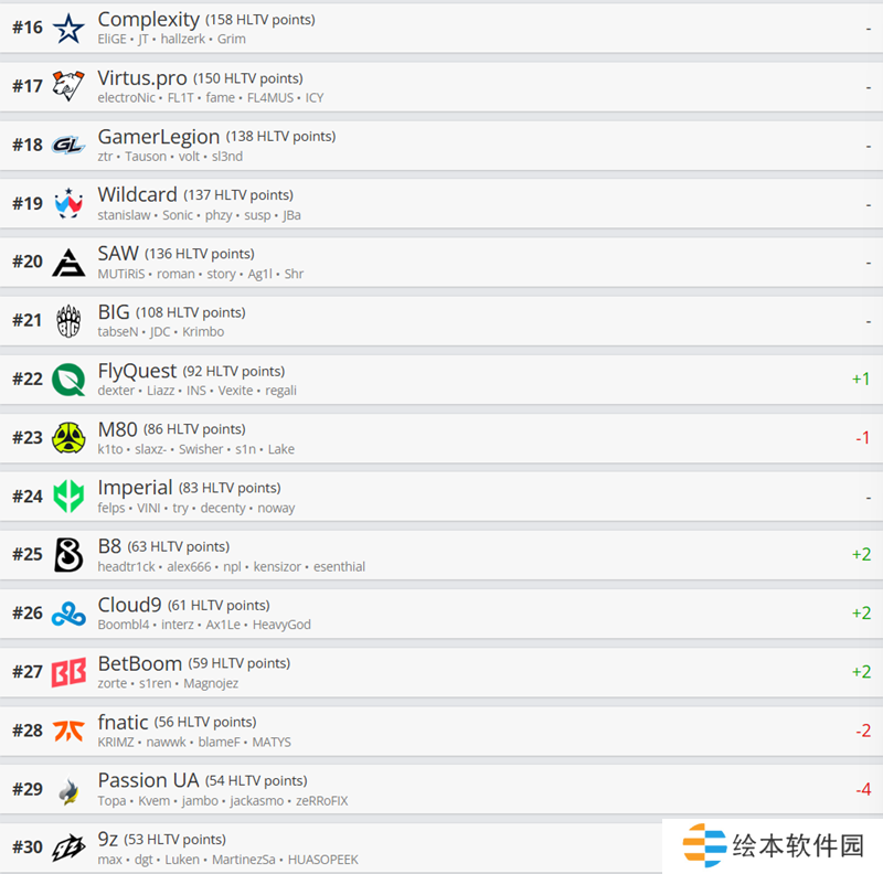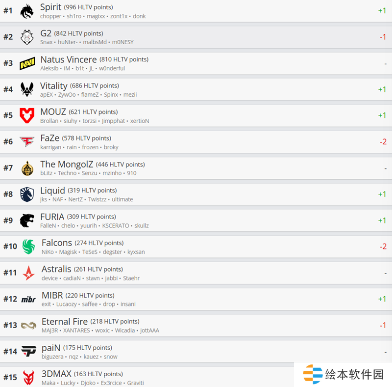 HLTV本周世界排名:Spirit位列第一 FaZe跌出前五