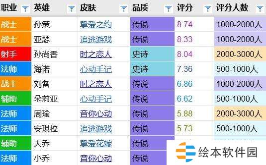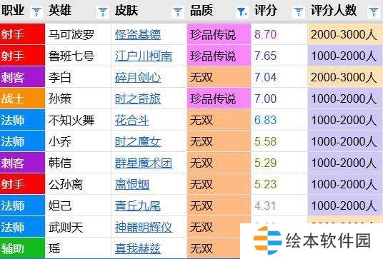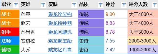 孙策皮肤评分对比:龙年限定9分居首 时之奇旅7.0分