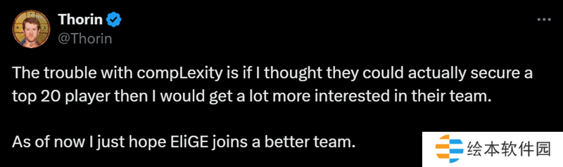 Thorin:现在只希望EliGE加盟一支更好的队伍