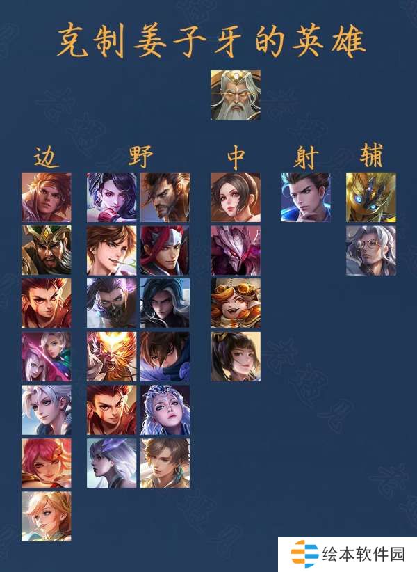 大部分的软辅和姜子牙没有克制关系,肉辅就比较尴尬,如果开团能够开到姜子牙还好,开不到就会被频繁的控制折磨。只有鬼谷子,鲁班大师这种开团能力极强的,会让姜子牙没有办法生存。