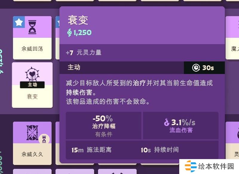 【衰变】,Dota玩家看到这个效果都很亲切,主动就是Dota2里的大骨灰,主动造成总共31%最大生命值的元灵伤害,以及持续10秒的减治疗,而如此变态的主动效果只需要30秒,这个伤害甚至比大多数英雄的大招伤害还高,甚至这个持续时间能吃到装备加成,更甚至这件装备只要1250G,还提供7元灵力量。我只能说,V社用脚填的数值。