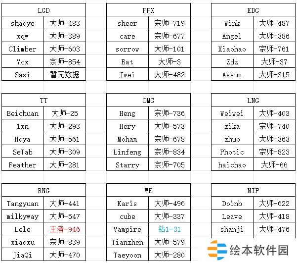 截止发稿前,LPL所有首发选手中仅3人韩服段位打上王者,分别是BLG打野Wei、辅助ON以及RNG辅助Lele;而有3人韩服段位还在钻石,分别是BLG中单knight、iG上单TheShy,以及WE辅助Vampire,其中TheShy由于长时间为进行排位,账号段位显示为钻3!