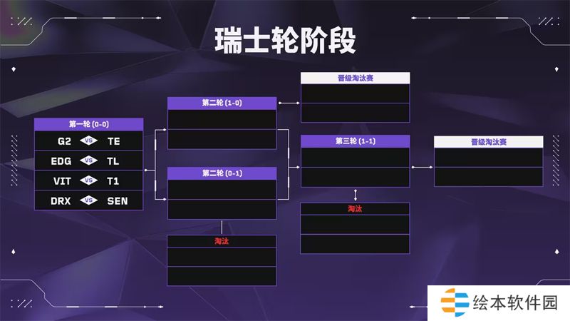 本阶段中,参赛队伍需要在最多三轮的比赛中取得两次胜利,而输掉两次比赛将被淘汰。每场比赛均为三局两胜制。