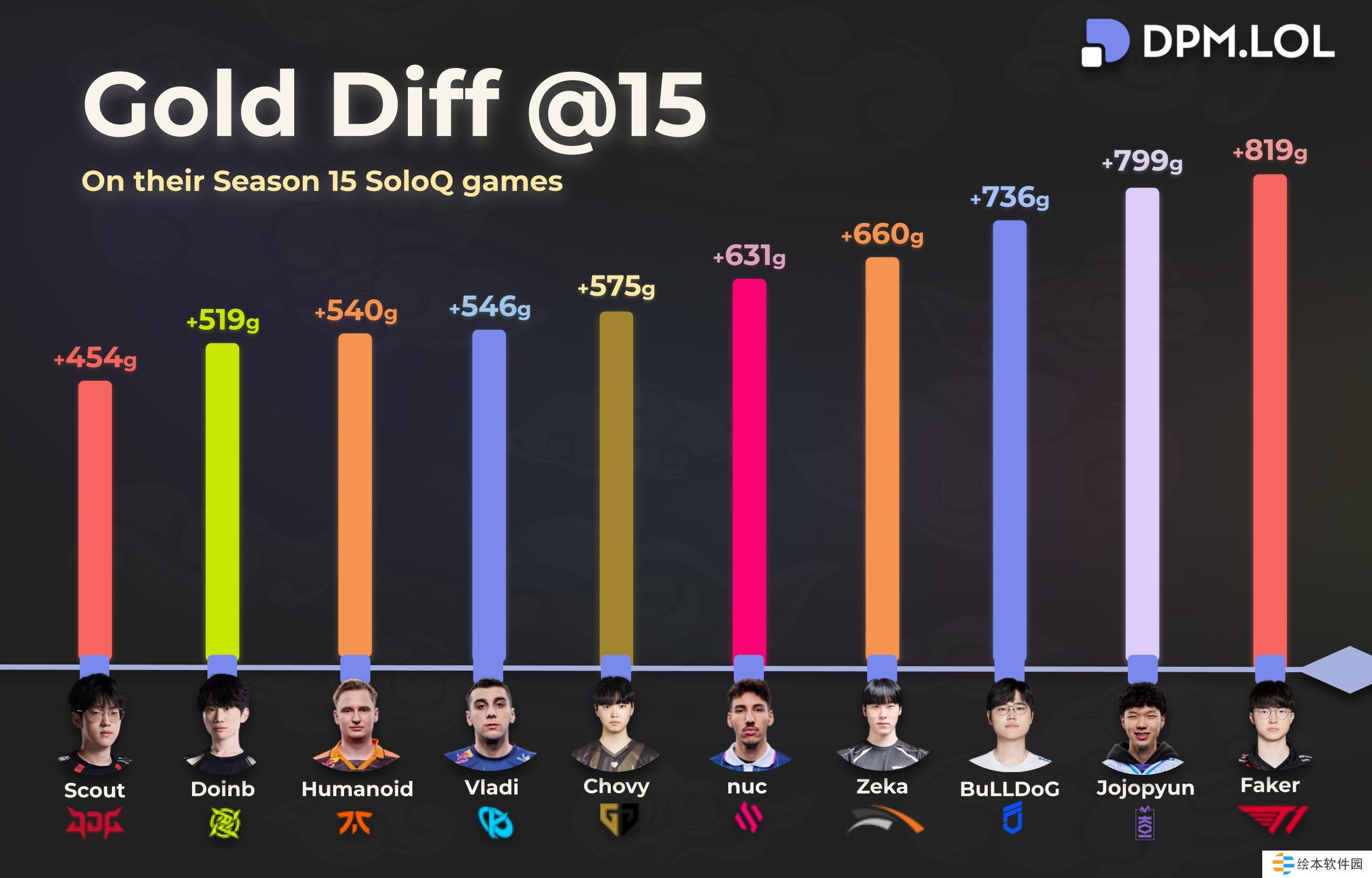 外媒统计中单十五分钟经济差前十:Faker独占鳌头 Doinb、Scout分列第九、第十