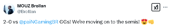 Brollan:2-0战胜paiN。gg!我们进入半决赛了!