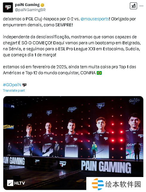 paiN官推:我们在PGL 克卢日-纳卡波站以0-2不敌MOUZ,遗憾出局。你们一如既往地带给我们强大的挑战!